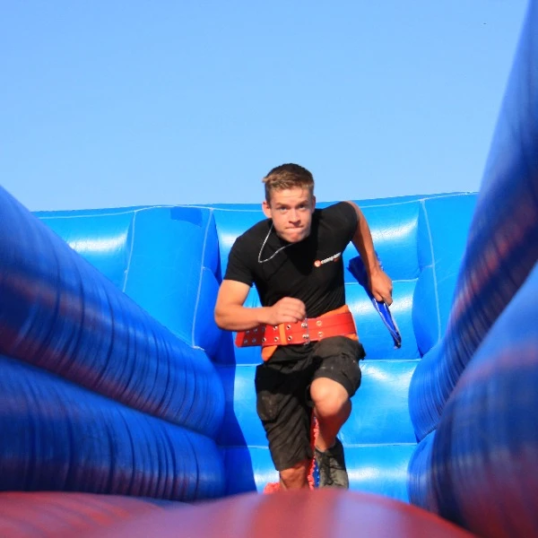Een bungeerun is een leuk en uitdagend spel waarbij deelnemers proberen om zo ver mogelijk te rennen voordat ze worden teruggetrokken door een elastisch bungeekoord. Het huren van een bungeerun in de kleur blauw bij Vcompany is een geweldige manier om een element van plezier en competitie toe te voegen aan elk evenement.