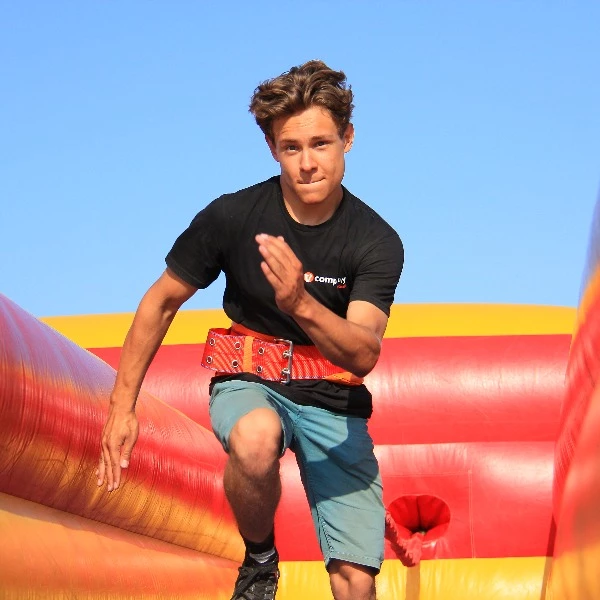 Een bungeerun is een opwindend spel waarbij twee deelnemers tegelijkertijd proberen om zo ver mogelijk op een opblaasbare baan te rennen voordat ze door een bungeekoord terug worden getrokken. Het huren van een bungeerun in de kleur rood bij Vcompany is een geweldige manier om een element van competitie en plezier toe te voegen aan elk evenement.