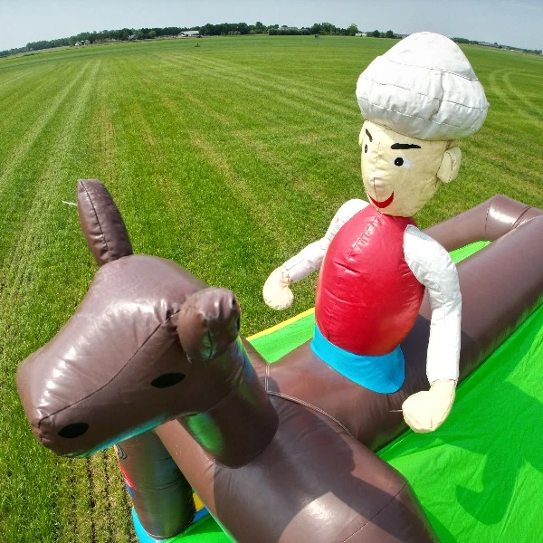 Het Cowboy springkussen is voorzien van gebruiksvriendelijke op- en afbouw instructies. Wanneer de blower aan het kussen is bevestigd, blaast het luchtkussen zich eenvoudig snel op. Mocht je zelf niet in staat zijn het springkussen op te zetten, kies dan voor een van onze aanvullende opties. Zo kun je er bijvoorbeeld voor kiezen het springkussen volledig door ons op te laten zetten en te begeleiden. Dit is wel op aanvraag! Op deze manier kun je onbezorgd van jou feest genieten.