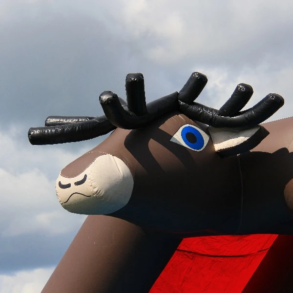 Een groot eland springkussen, dat is een ware eyecatcher op jou evenement! Met een breedte van 6 meter en een hoogte van 5 meter valt dit groot eland springkussen zeker op. Het is de perfecte toevoeging voor jou kerstmarkt, braderie, markt of een ander winters evenement.