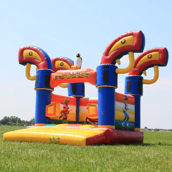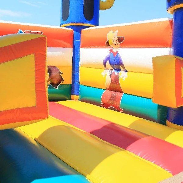 Ontdek het avontuur van het Springkussen Saloon middel en dompel je onder in het wilde westen. Perfect voor kleine cowboys, goudzoekers en mijnwerkers die op zoek zijn naar een onvergetelijke ervaring. Verander je feestje in een authentiek cowboyfestijn met dit middelgrote springkussen van 5 x 4 meter, een ware eyecatcher voor elk evenement.