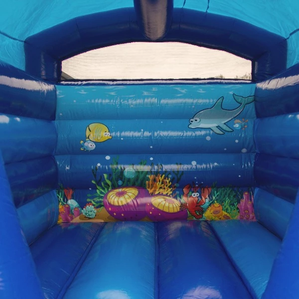 Diep in de zee daar leven allerlei interressante wezens. Neem een duik op dit springkussen zonder nat te worden van de zee. Op dit kussen kom je oog in oog te staan met de onderwaterwereld. Waan je in een zee aquarium, laat je meeslepen en beleef dolle avonturen. Hoe leuk is dat!