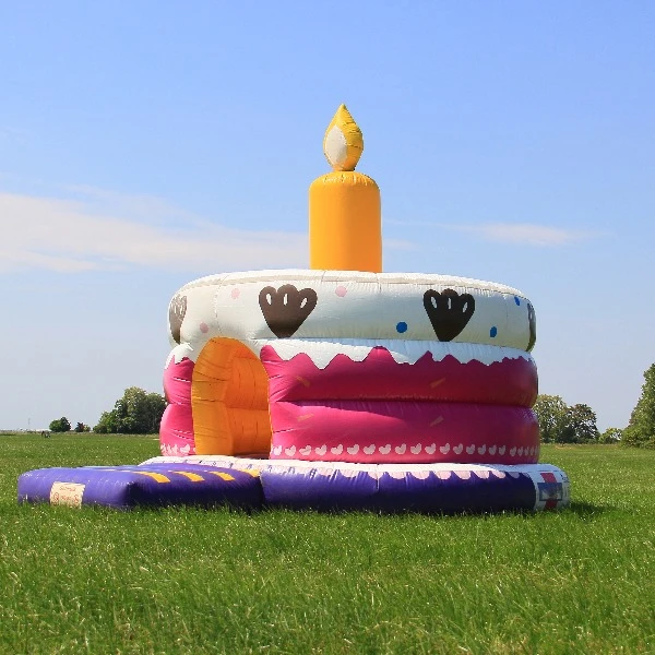 Laat de kinderen springen en te ravotten op dit kleurrijke opblaas taart springkussen, compleet met levensgrote kaarsen die als pilaren fungeren. Voeg een extra feestelijke touch toe door ook nog een heerlijke verjaardagstaart te bakken en de jarige in het zonnetje te zetten.
