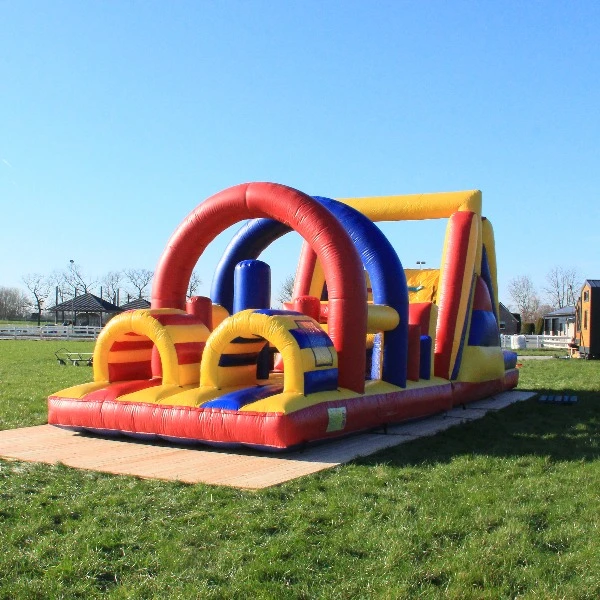 Het is erg vanzelfsprekend maar toch handig om te zeggen, dat je met 2 personen over de baan heen kan sprinten. Plaats je de baan op een harde ondergrond? Dan dien je gebruik te maken van een valmattenpakket, voor deze baan heb je het XXL pakket nodig. Let er op dat je rondom het kussen een ruimte van minimaal 1 meter vrij hebt.