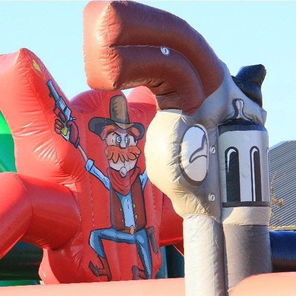 Stap in het leven van een cowboy en daag jezelf uit om elke hindernis te trotseren. Van het klimmen en glijden tot het ontwijken van obstakels. De stormbaan brengt het feest naar een hoger niveau.